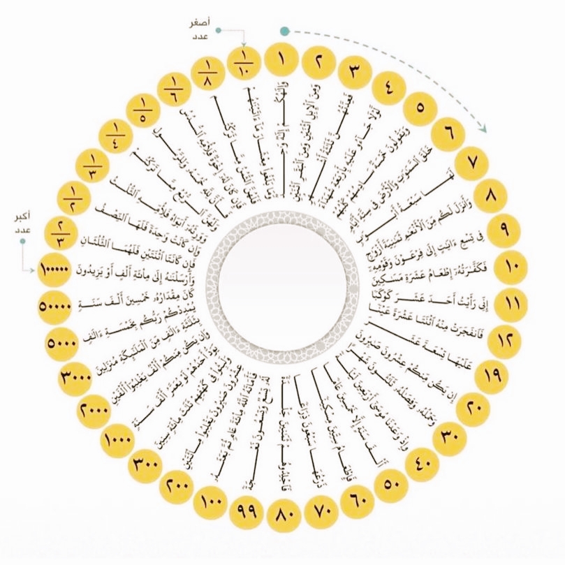 Lebih dalam lagi, kalau kita cari dan hitung semua angka (bilangan asli) yang disebut dalam Al-Qur’an, angka yang dimaksud seperti satu, dua, tiga) ( واحد اثنين ثلاثة اربعة dan bukan bilangan seperti pertama, kedua, ketiga ( اول ثاني ثالث ) dan seterusnya yang bersifat urutan ataupun pecahan ( ( ثلث ربع خمس maka totalnya ada 30 jenis Angka yang disebut, yaitu: